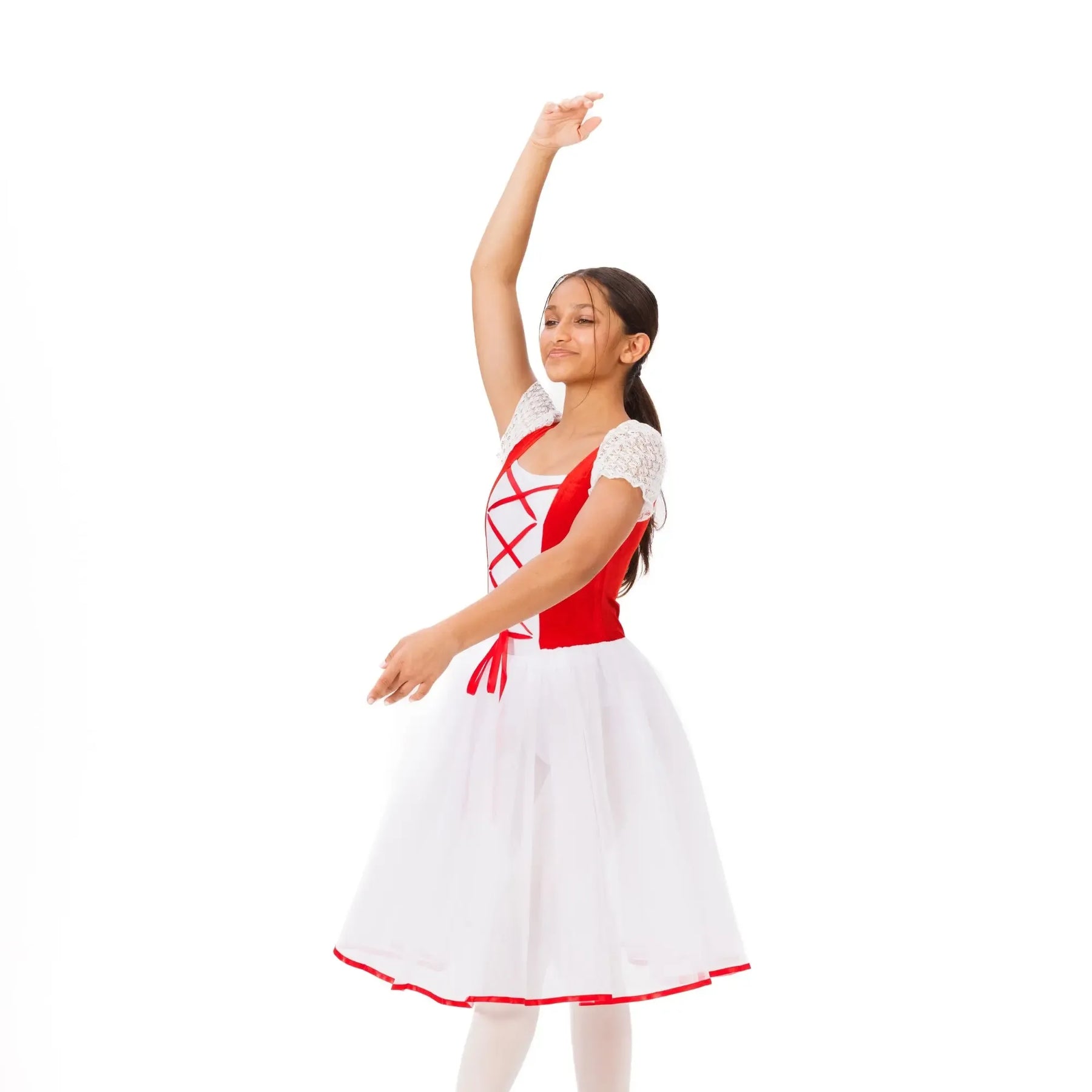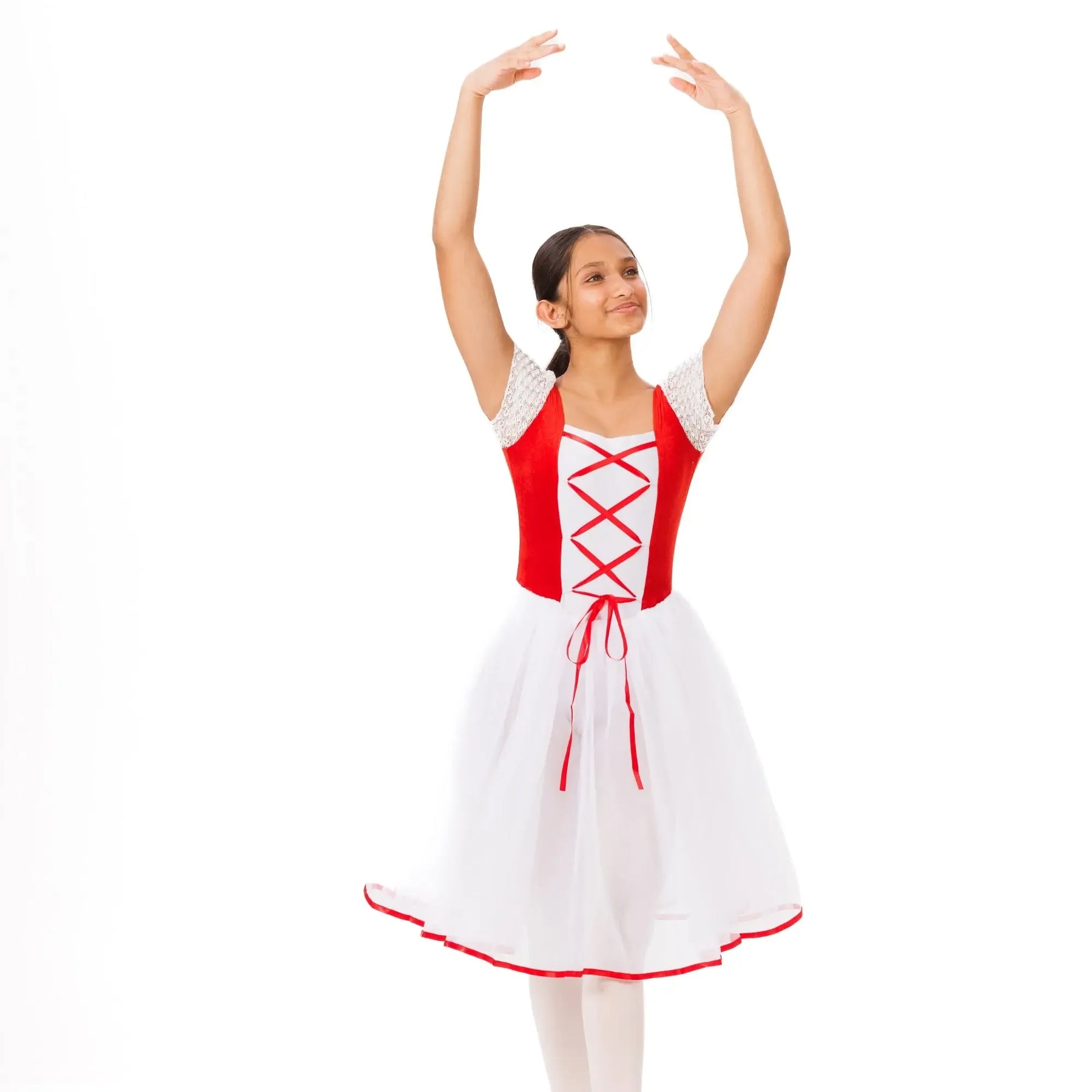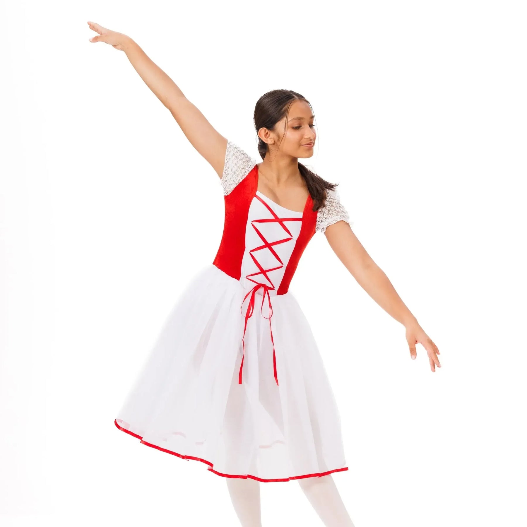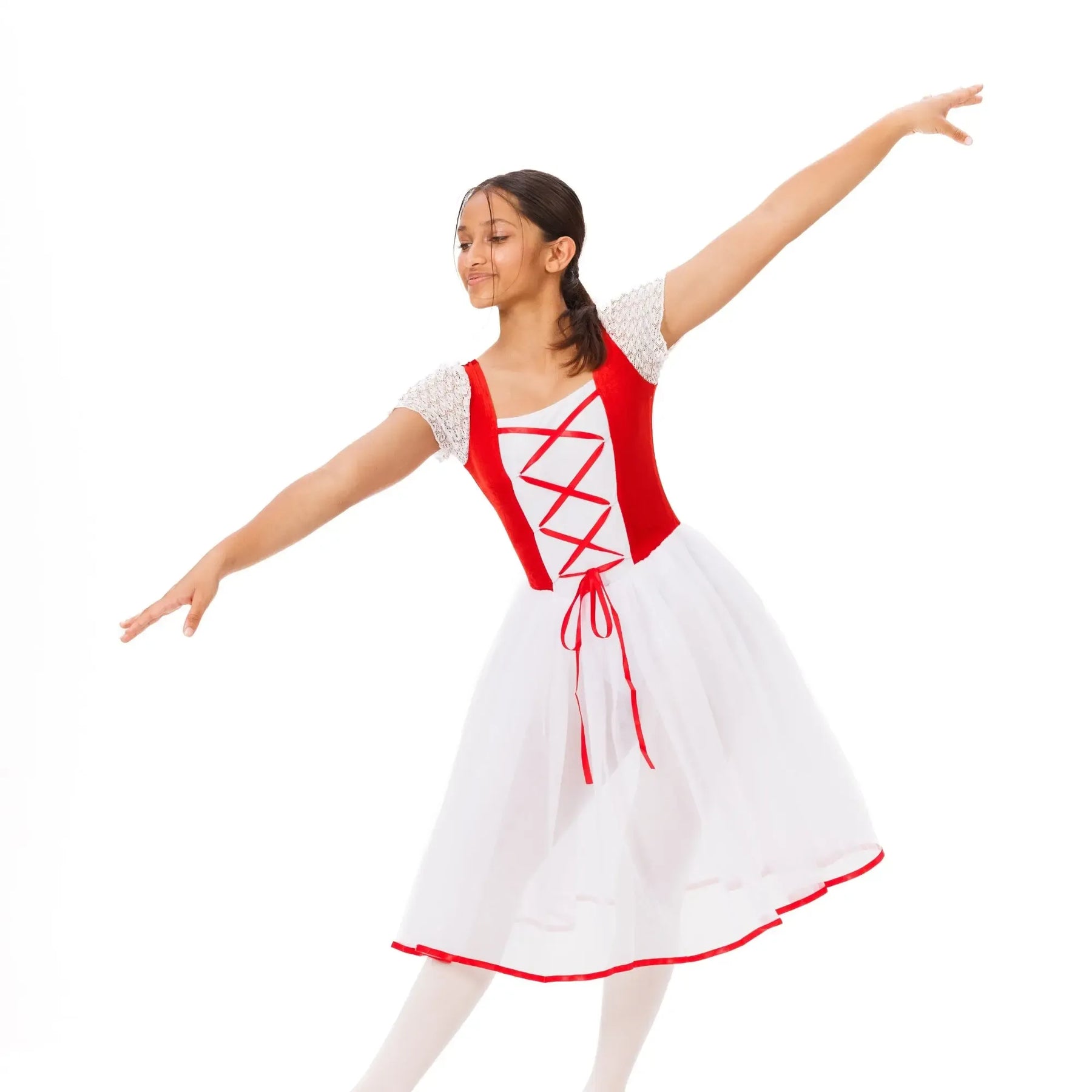 An elegant ballet tutu with layered tulle, velvet waistband, and lace detailing for lightweight, fluid classical performance.