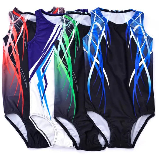 Elegantly engineered in a soft 4-way stretch nylon-spandex blend, featuring a bright, dynamic design that delivers standout style and effortless movement for practice or performance.