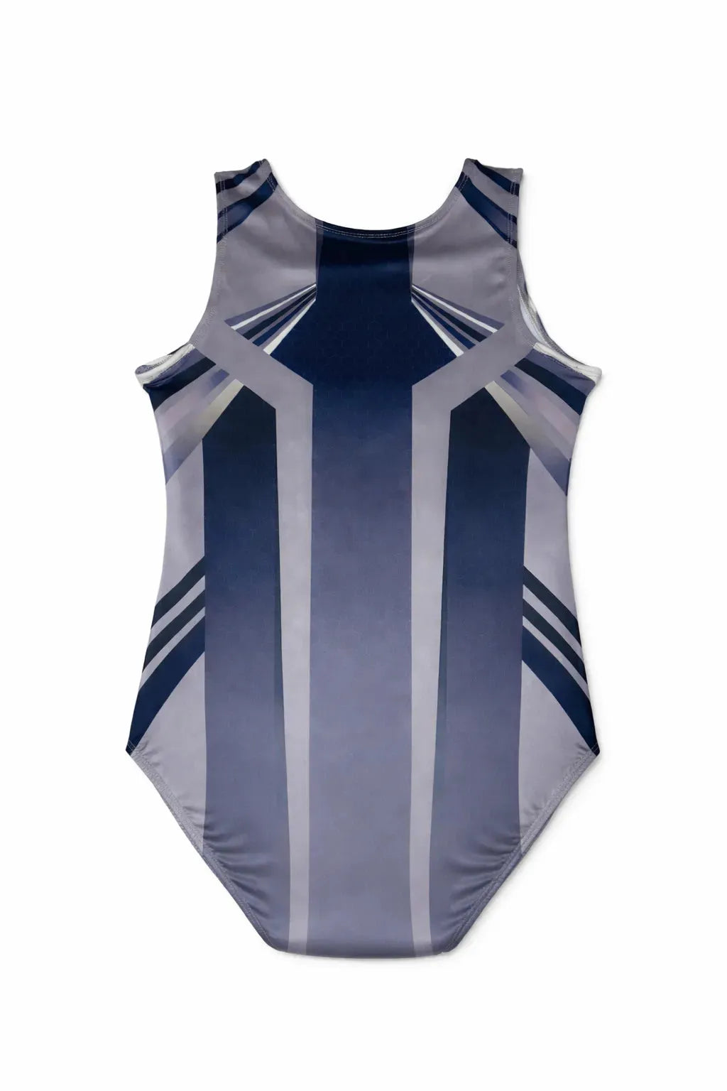 Elegantly engineered in a soft 4-way stretch nylon-spandex blend, featuring a bright, dynamic design that delivers standout style and effortless movement for practice or performance.