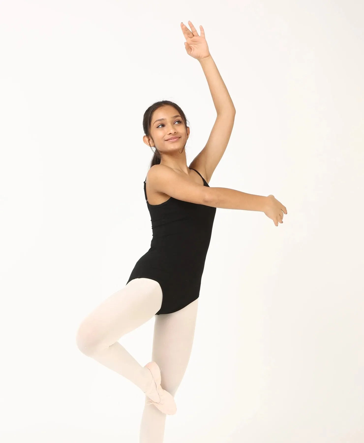 Elegantly engineered in a soft nylon-spandex blend, featuring full front lining, optional bra pads, and camisole straps silhouette—perfect for ballet, dance, and stage performances.