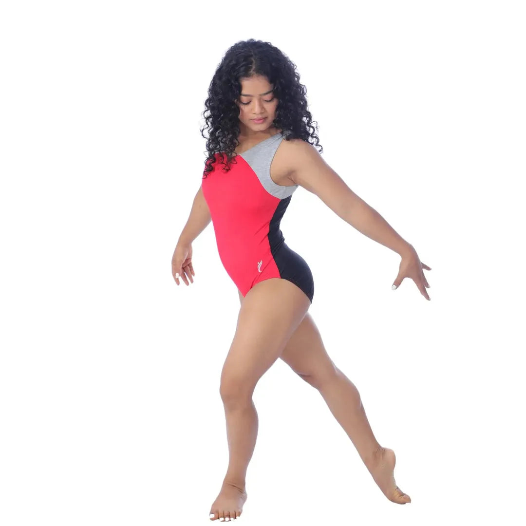 Elegantly engineered in soft 4-way stretch nylon-spandex, tank silhouette with contrast color blocking, performance-ready look with comfort and style.