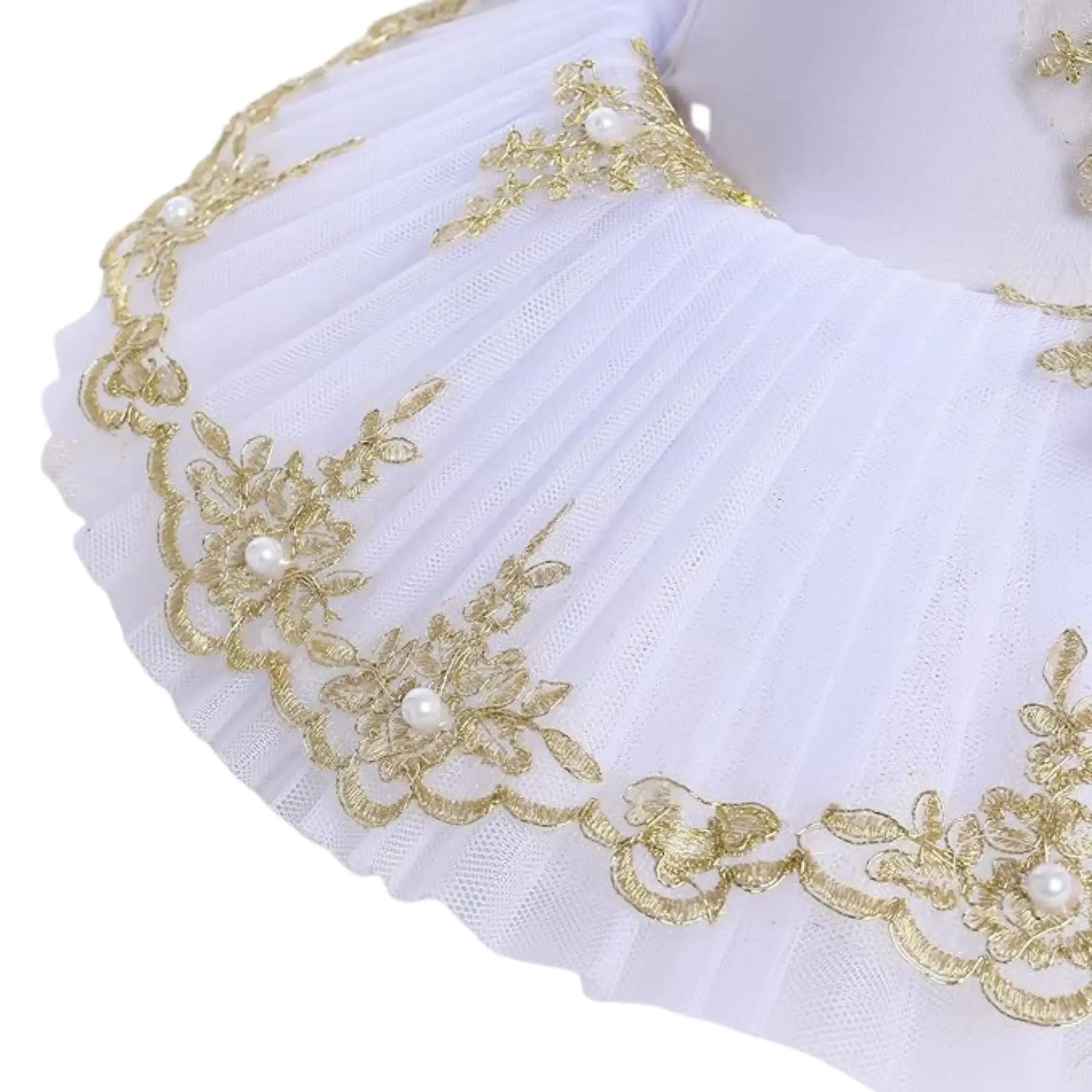 A vintage-inspired pancake tutu with a breathable nylon-spandex bodice and structured tulle for timeless ballet elegance.