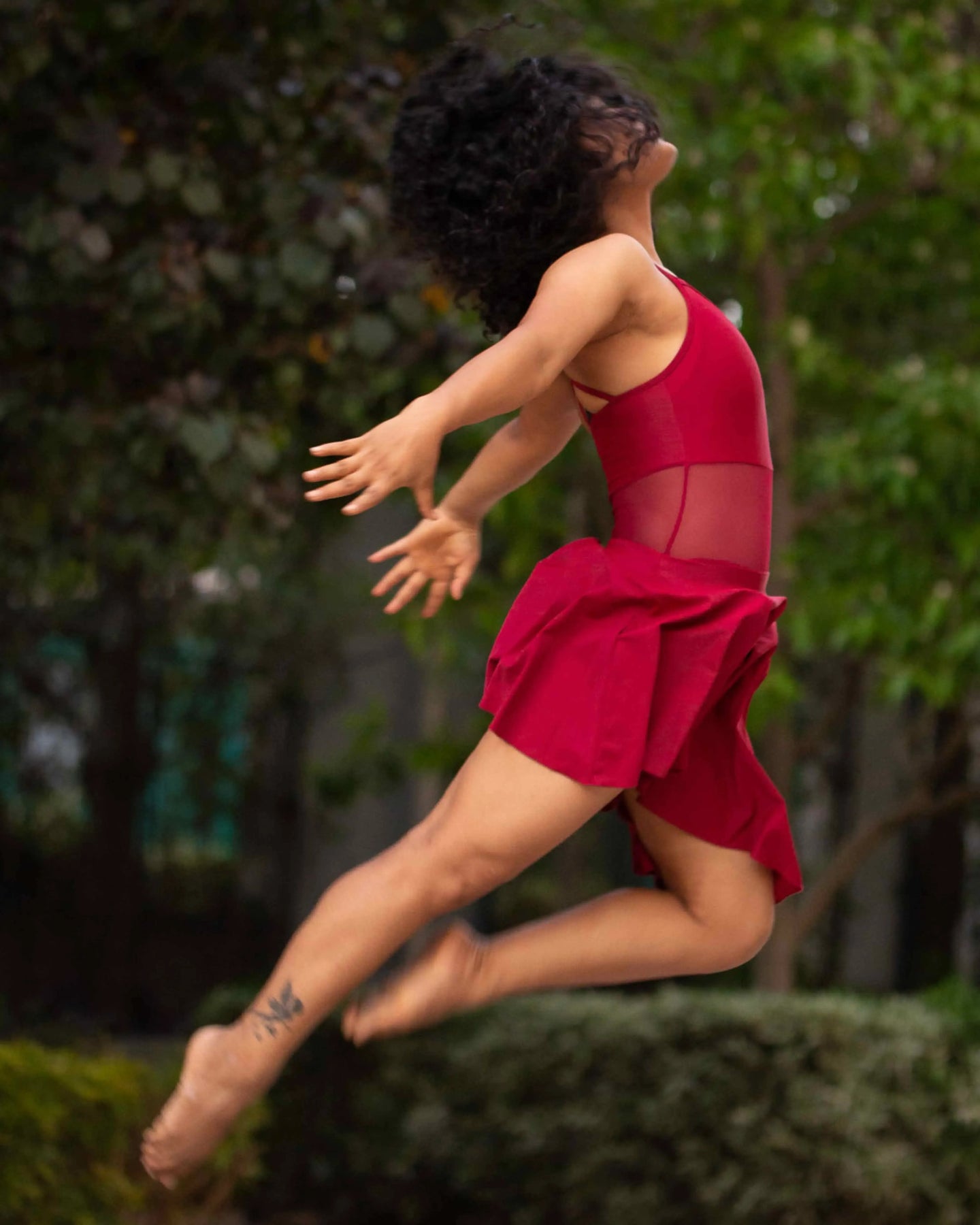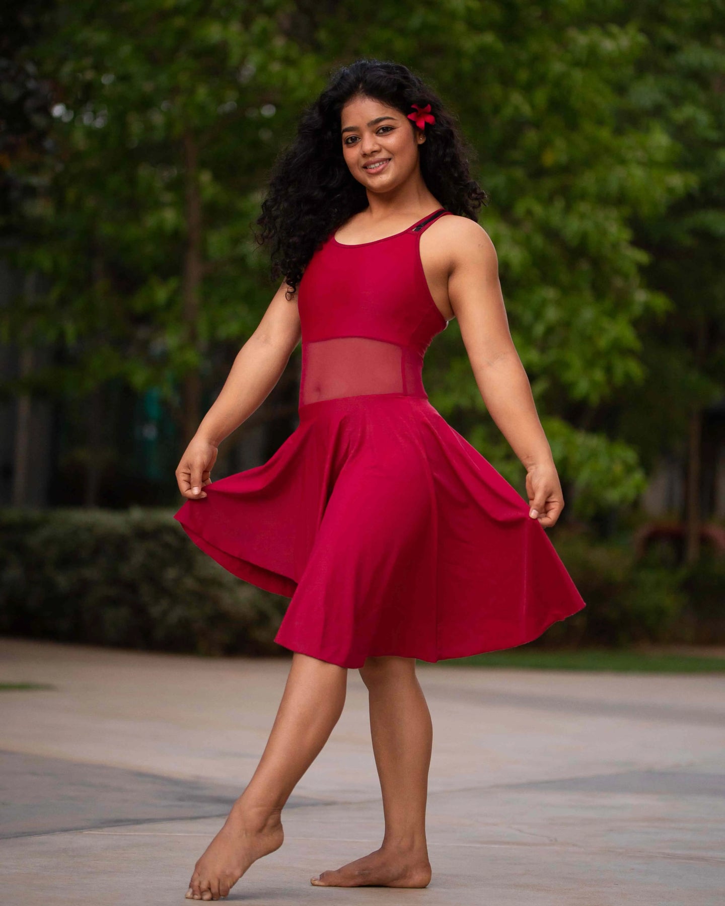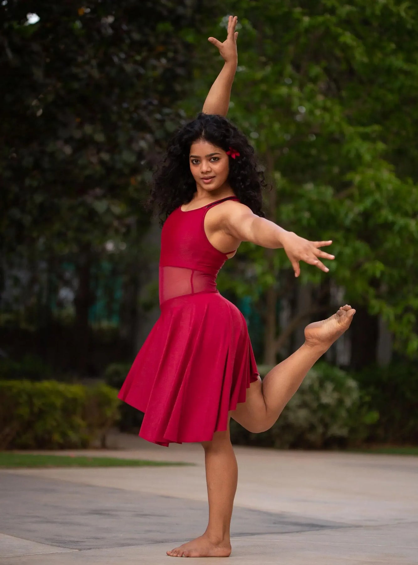 A fully lined nylon-spandex dress with breathable stretch, designed for fluid movement and all-day comfort across dance and training.