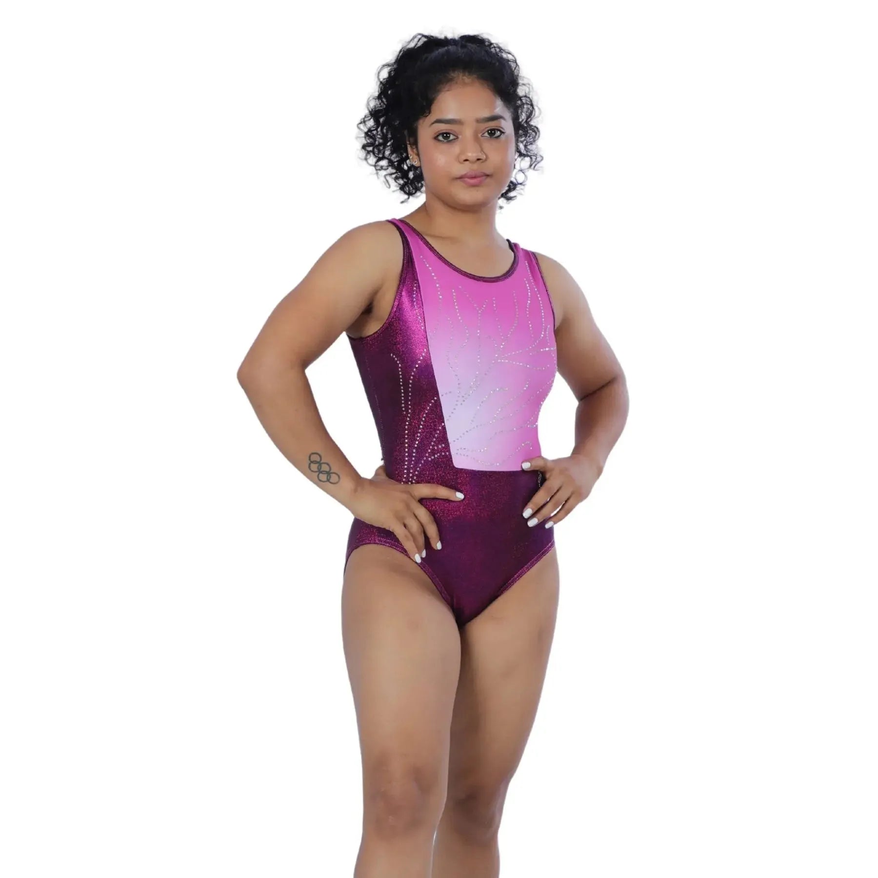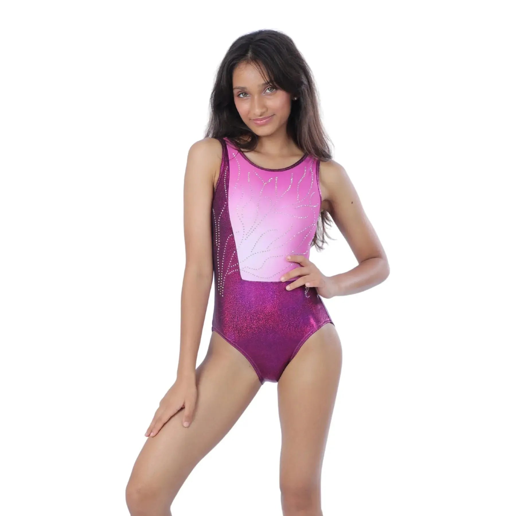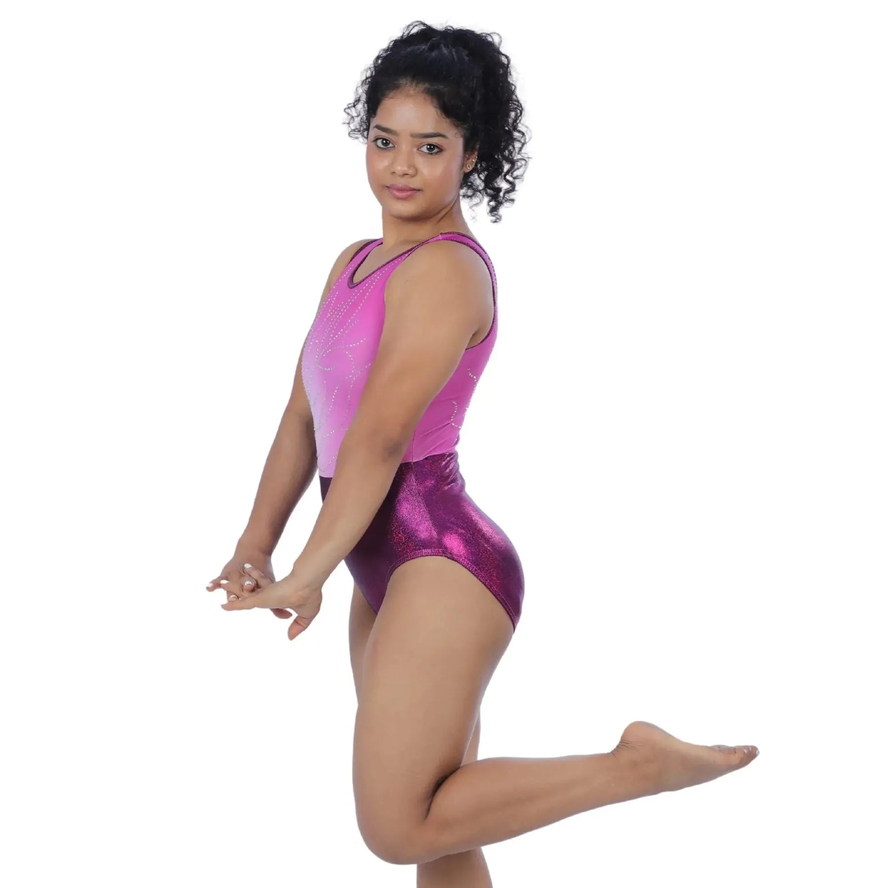 Elegantly engineered in soft 4-way stretch nylon-spandex, tank silhouette with rhinestones, performance-ready look with comfort and style.