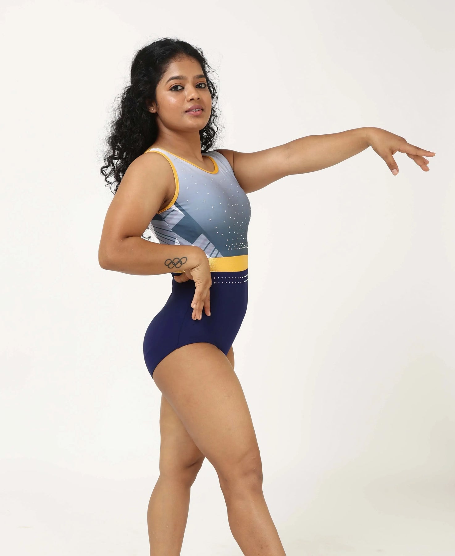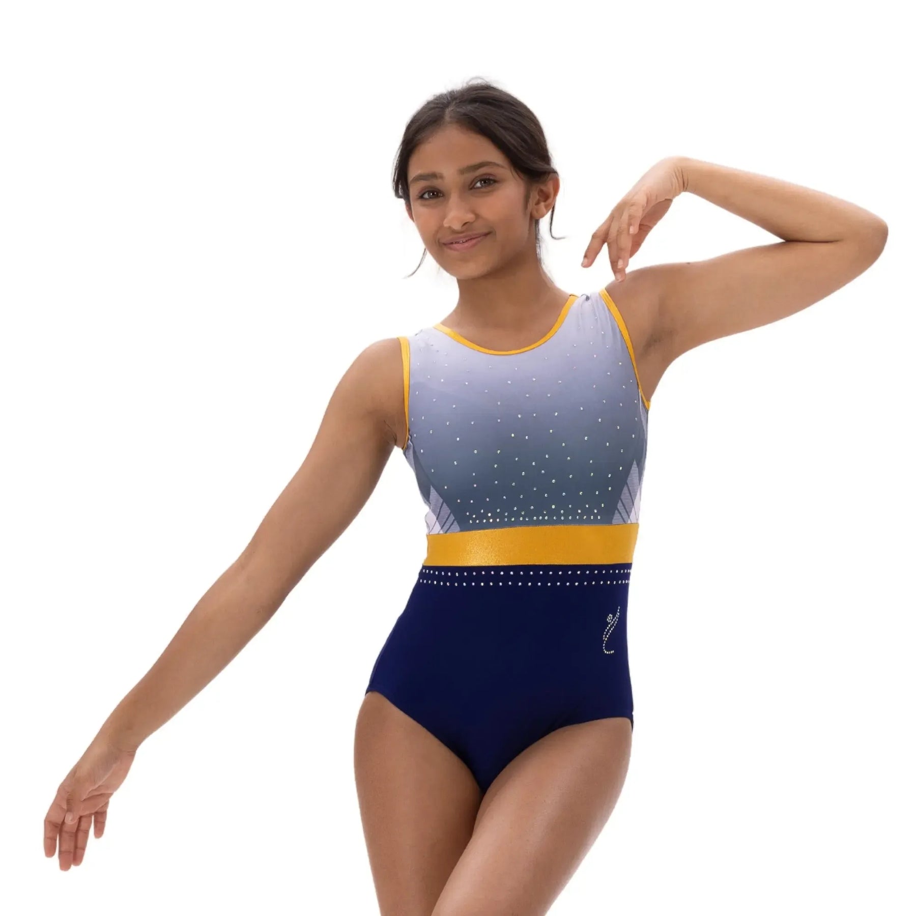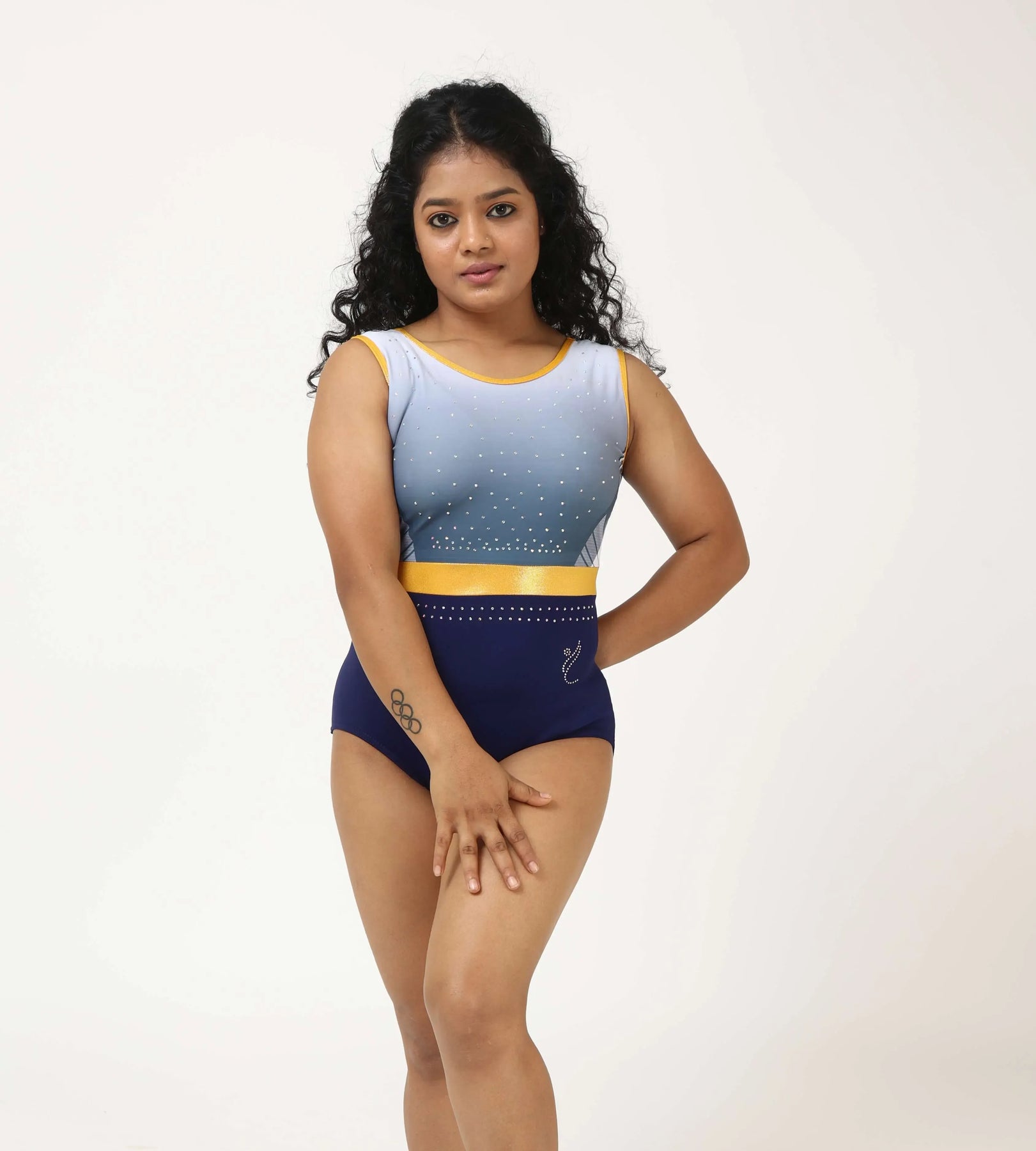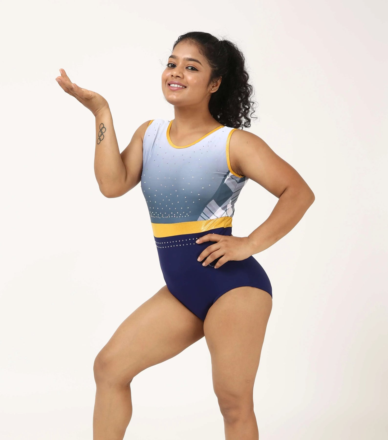 Elegantly engineered in a soft 4-way stretch nylon-spandex blend, enhanced with 200–300 rhinestones for a sparkling, performance-ready look.