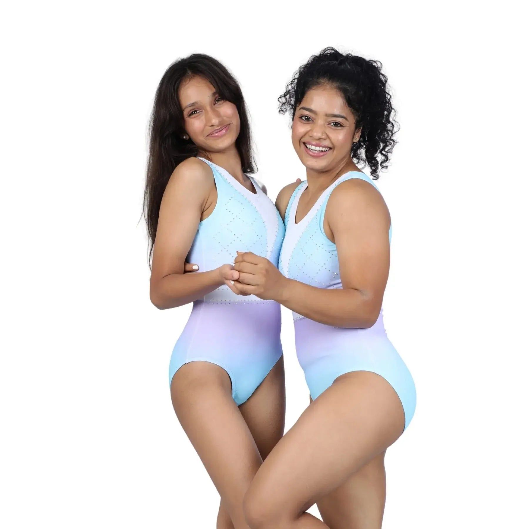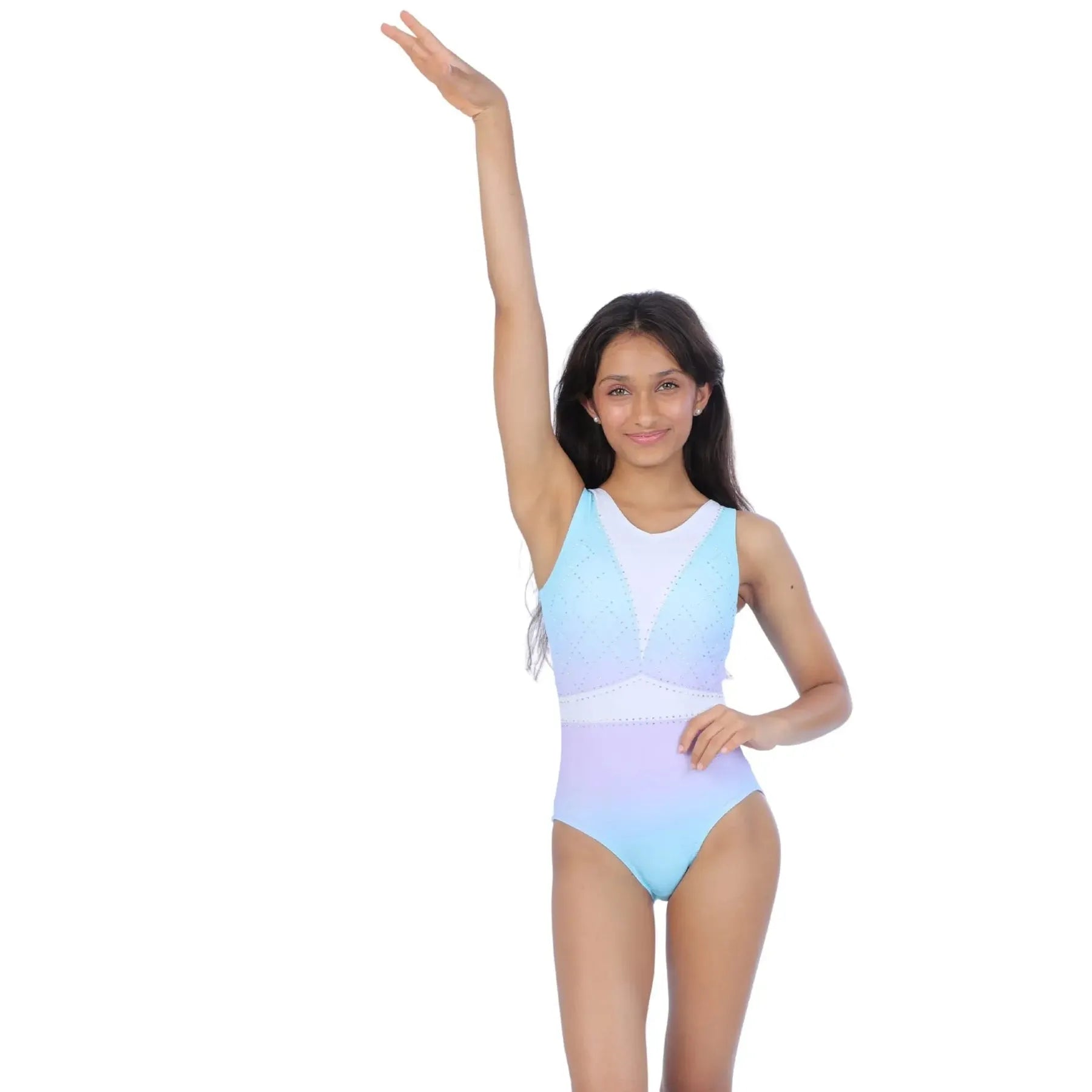 Elegantly engineered in soft 4-way stretch nylon-spandex, tank silhouette with rhinestones, performance-ready look with comfort and style.