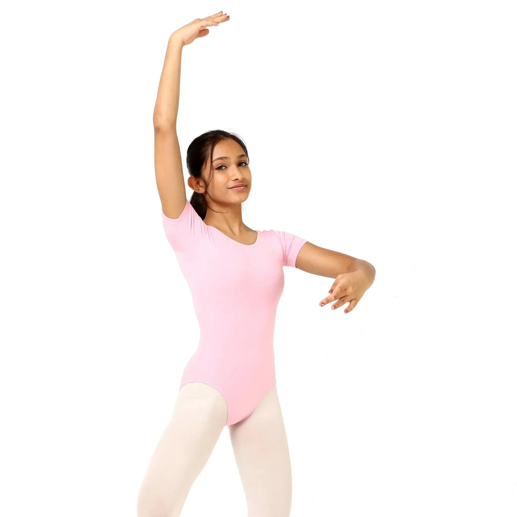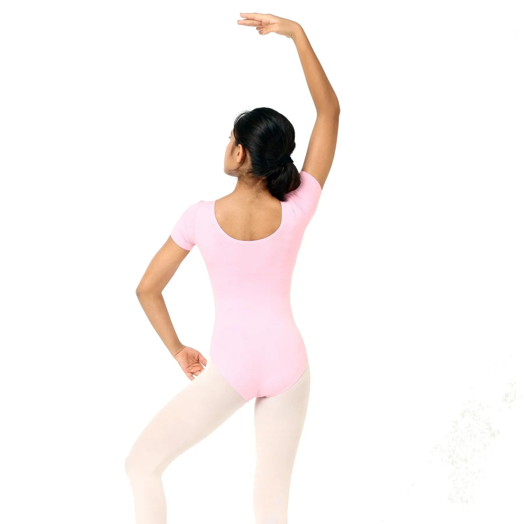 Elegantly engineered in a soft cotton-spandex blend, featuring full front lining, short sleeves, optional bra pads, and a convertible scoop or V-neckline for polished ballet and stage performance.