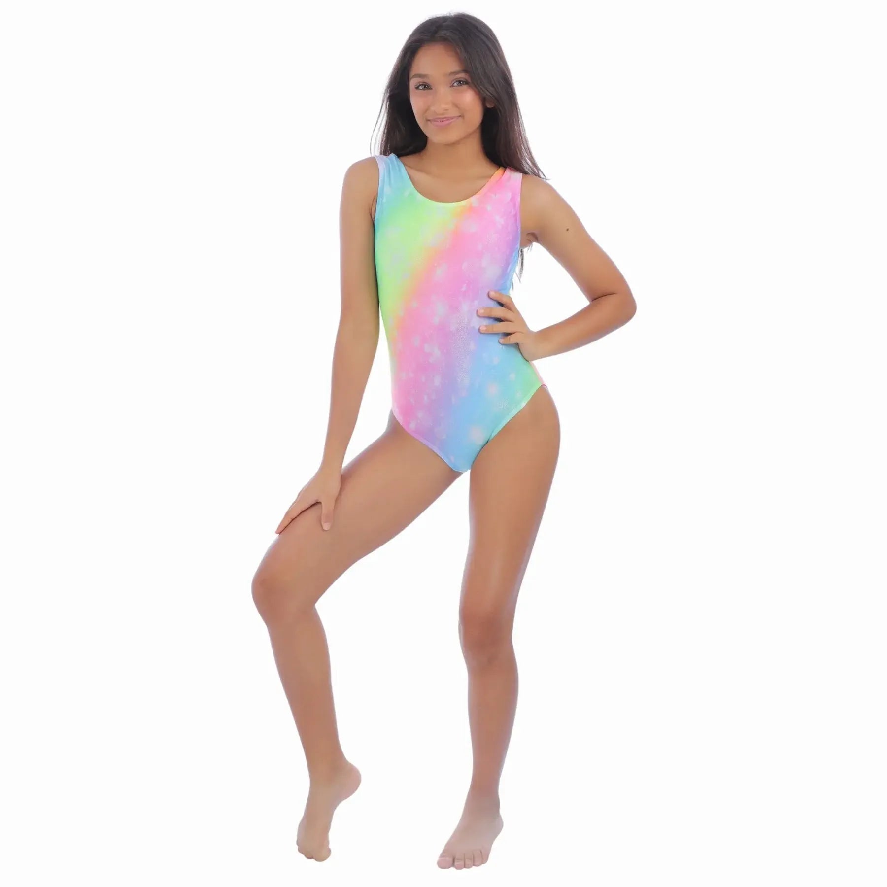 A beautiful leotard with a great fit. The rainbow colors pop and don't fade, even after washing.