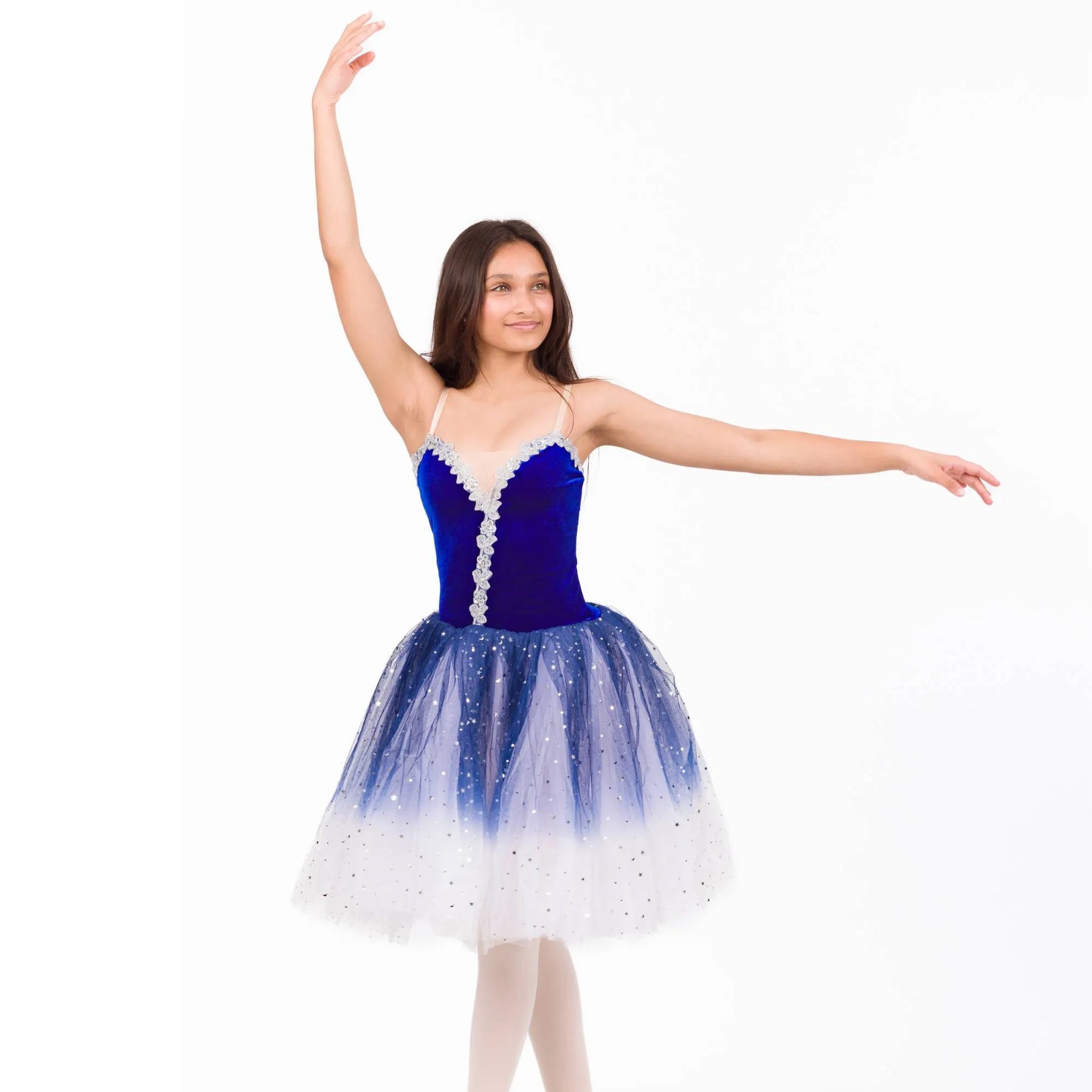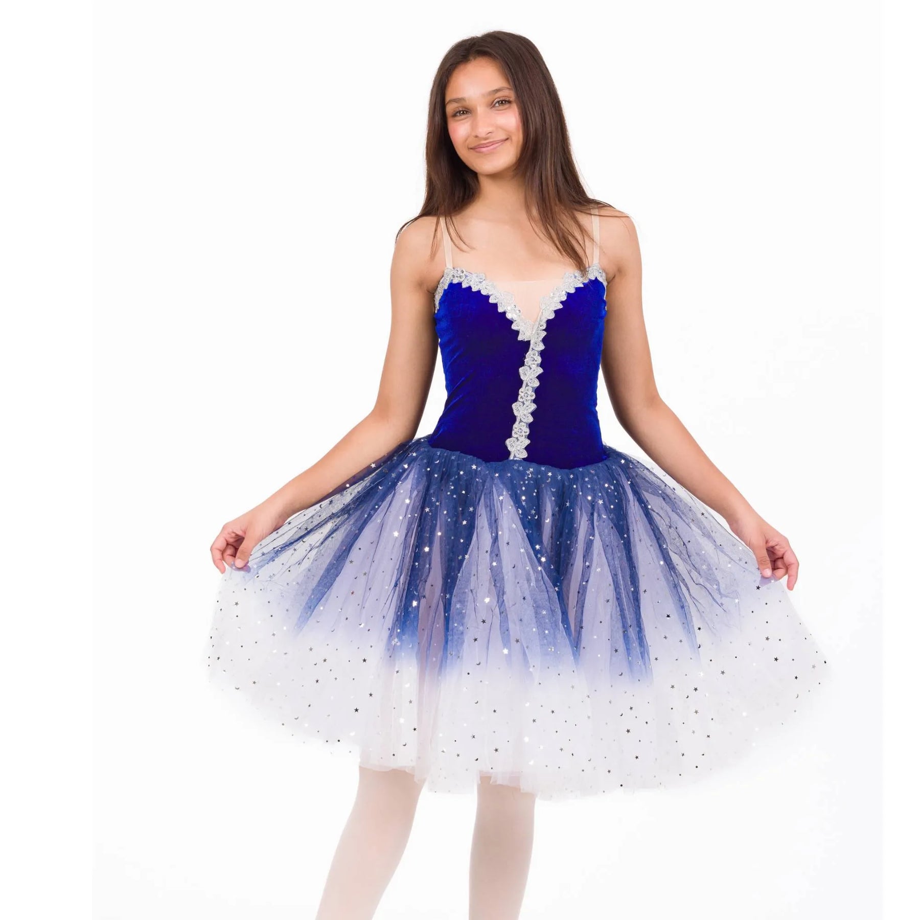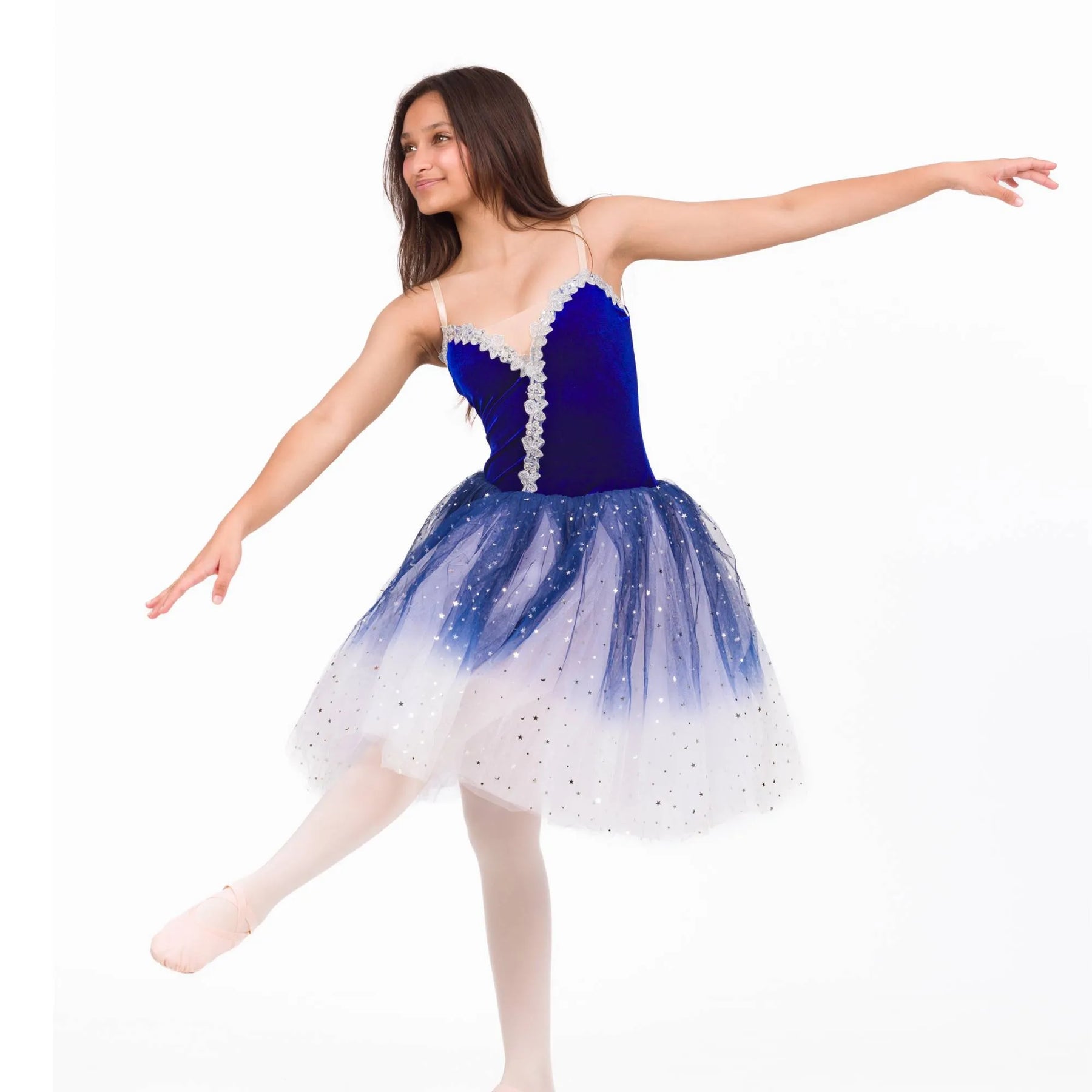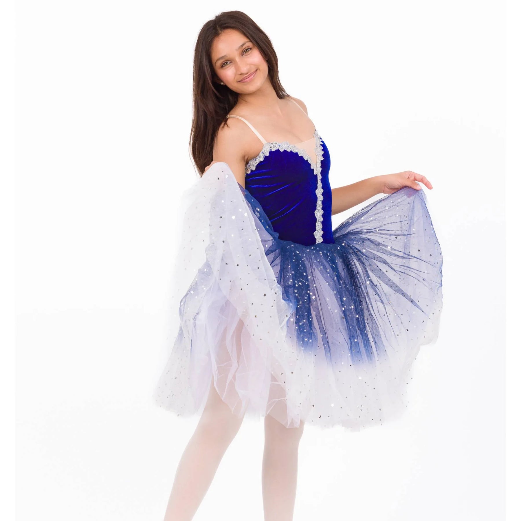 An elegant tutu with a nylon-spandex bodice, whimsical tulle layers, and delicate lace, satin, and bead details for a timeless, dreamy look.