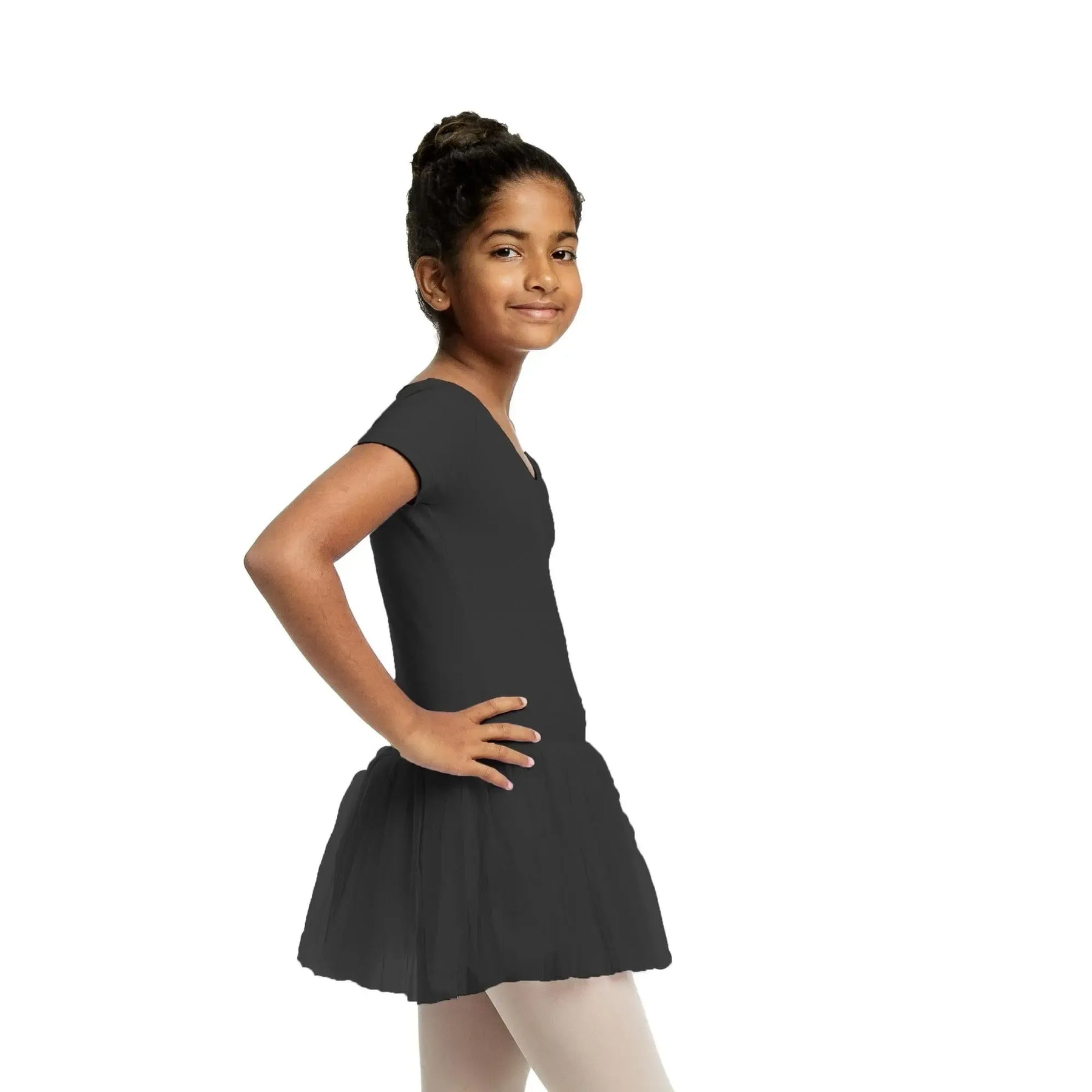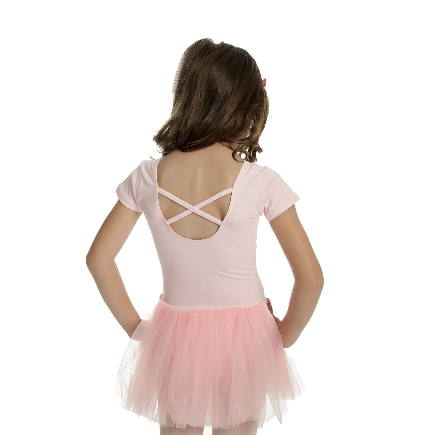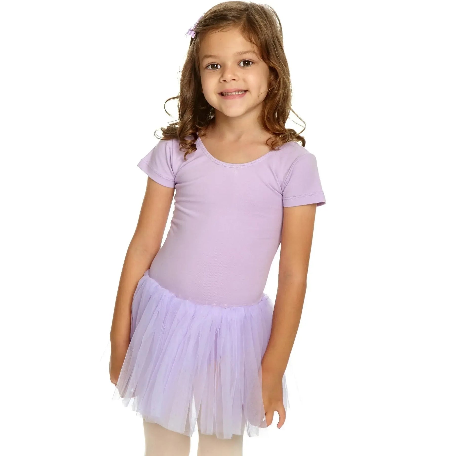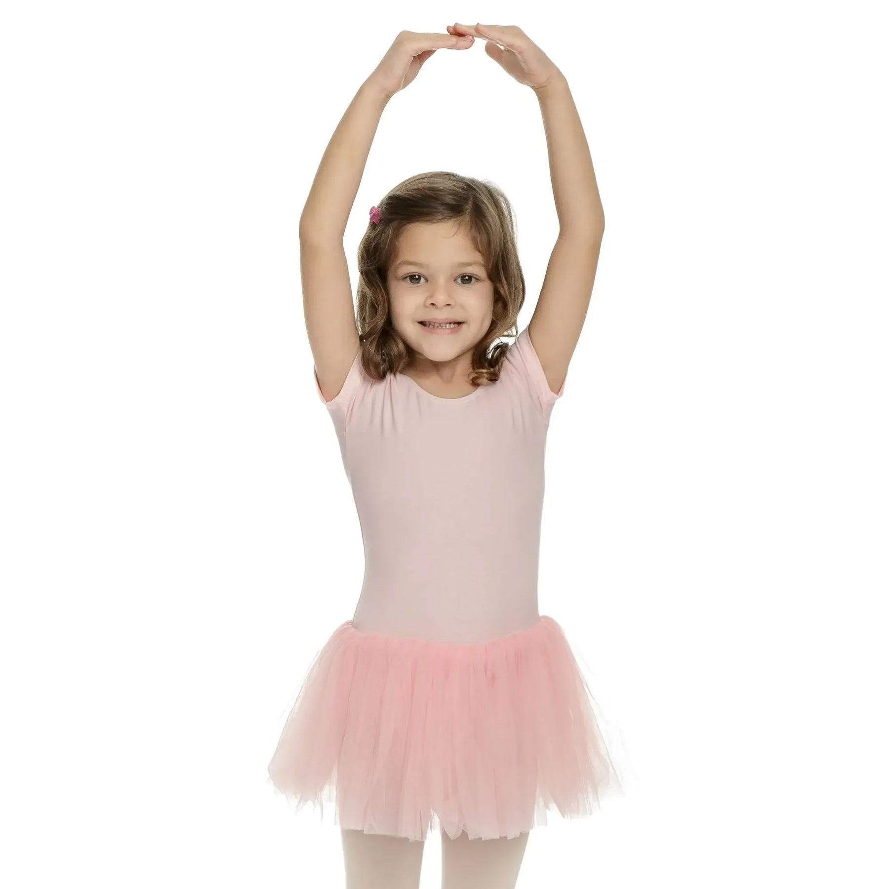 A cotton-spandex ballerina dress with a four-layer soft mesh tutu and designer mesh back, offering voluminous elegance and breathable comfort.