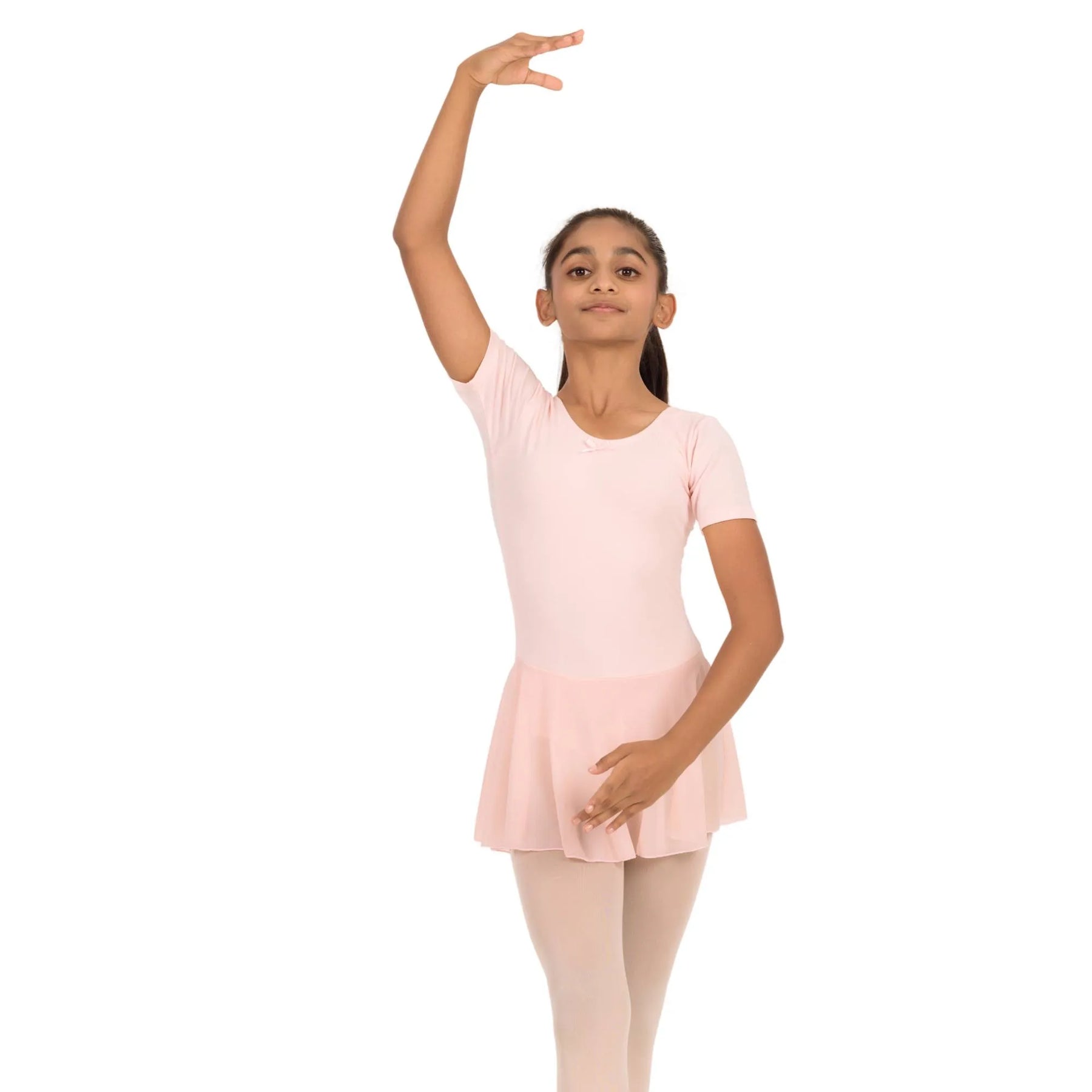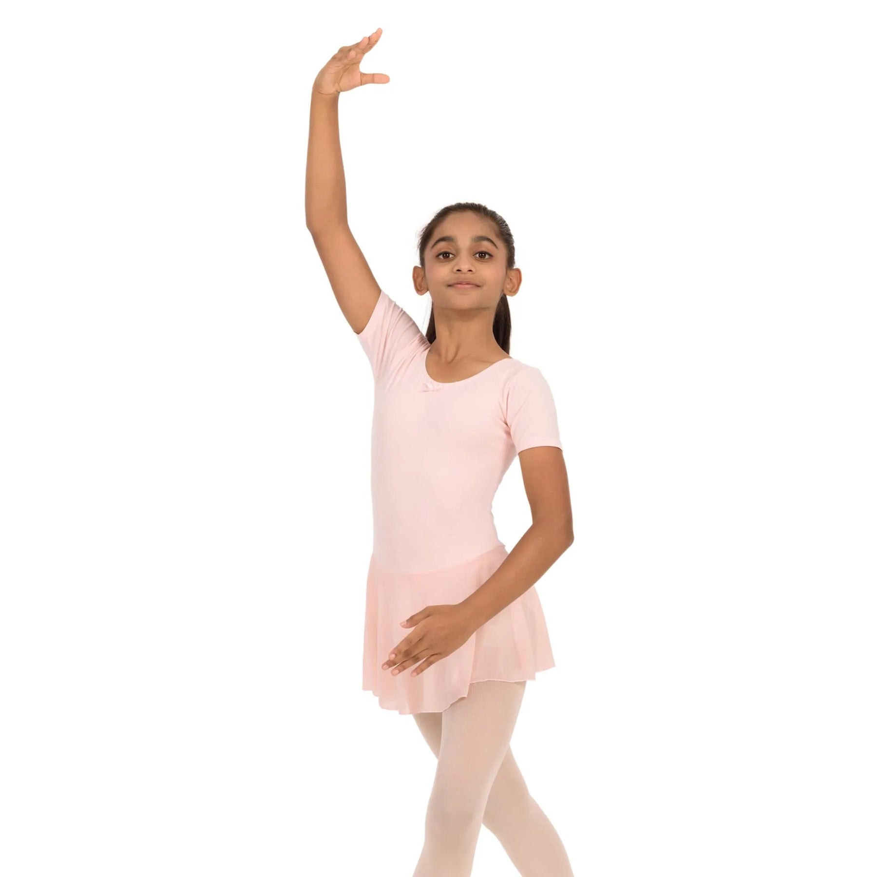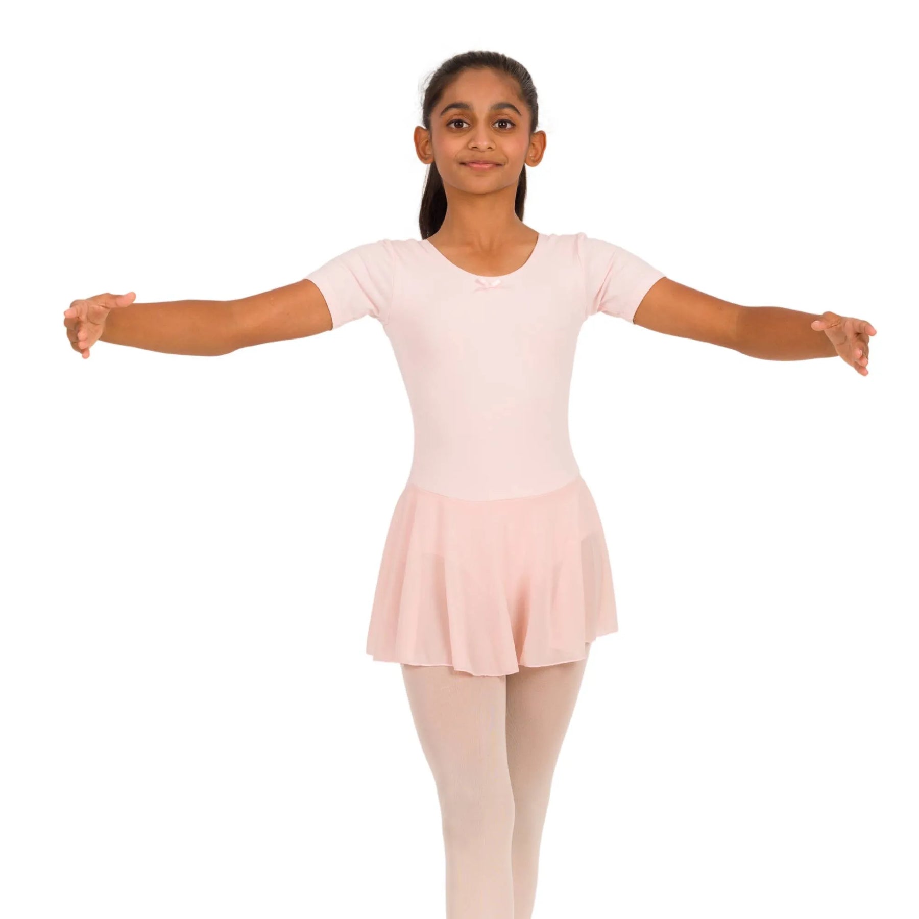 A comfortable ballerina dress with a cotton-spandex bodice, soft mesh tutu, and supportive front lining for everyday elegance.